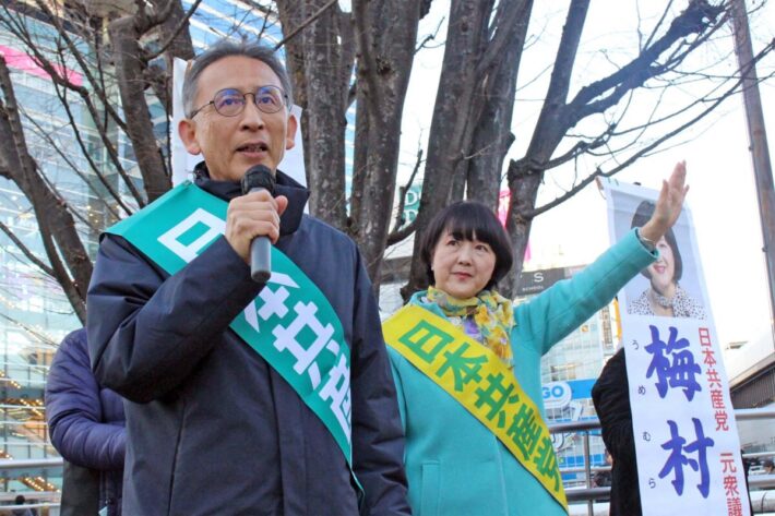 衆院が解散された23日、北関東、南関東、東京の各衆院比例ブロックの日本共産党比例予定候補と小選挙区候補は、27日公示(2月8日投票)の衆院選での躍進をめざし、一斉に街頭宣伝にとりくみました。